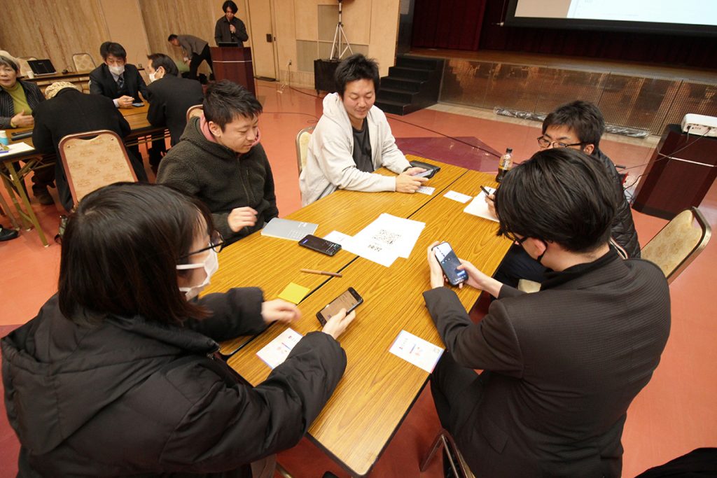 参加者の皆さんにスマートフォンで投稿したり、リアクションしてもらうことで、会場内の意見集約や支持傾向の共有を行うという仕掛けです。